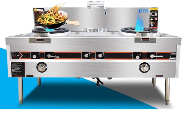 Bếp á 2 họng đất có quạt thổi được nhấp khẩu trực tiếp từ nhà sản xuất kết cấu bằng inox kiểu dáng công nghiệp bền đẹp.