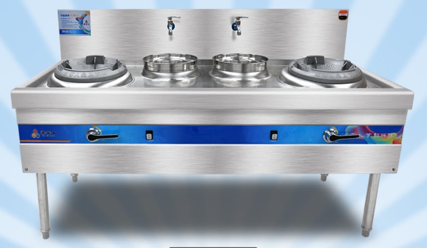 Bếp á 2 họng gang 2 nồi nước có quạt thổi được nhấp khẩu trực tiếp từ nhà sản xuất kết cấu bằng inox kiểu dáng công nghiệp bền đẹp.