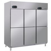 Tủ được kết cấu toàn bộ bằng inox có 6 cánh cửa giúp giảm lượng nhiệt thoát ra khi mở cửa tủ, phía bên trong tủ có 4 tầng để nguyên liệu có thể tháo lắp các tầng dễ dàng.