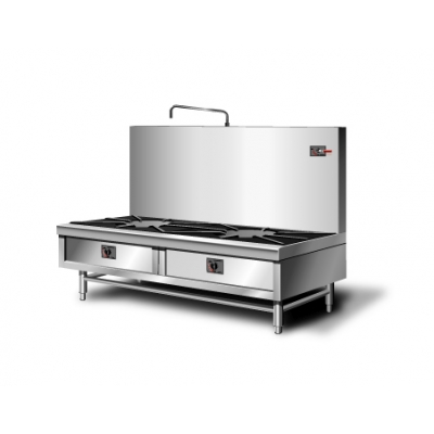 Bếp được thiết kế tao nhã mạnh mẽ với 2 họng bếp hầm Đài Loan , kiềng gang chịu nhiệt, hệ thống cấp nước tại chổ